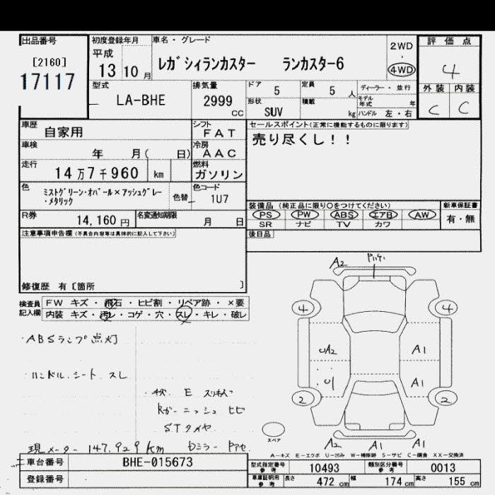 SUBARU LEGACY WAGON - лот 17117