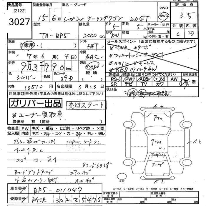 SUBARU LEGACY WAGON 4WD 2.0GT - лот 3027