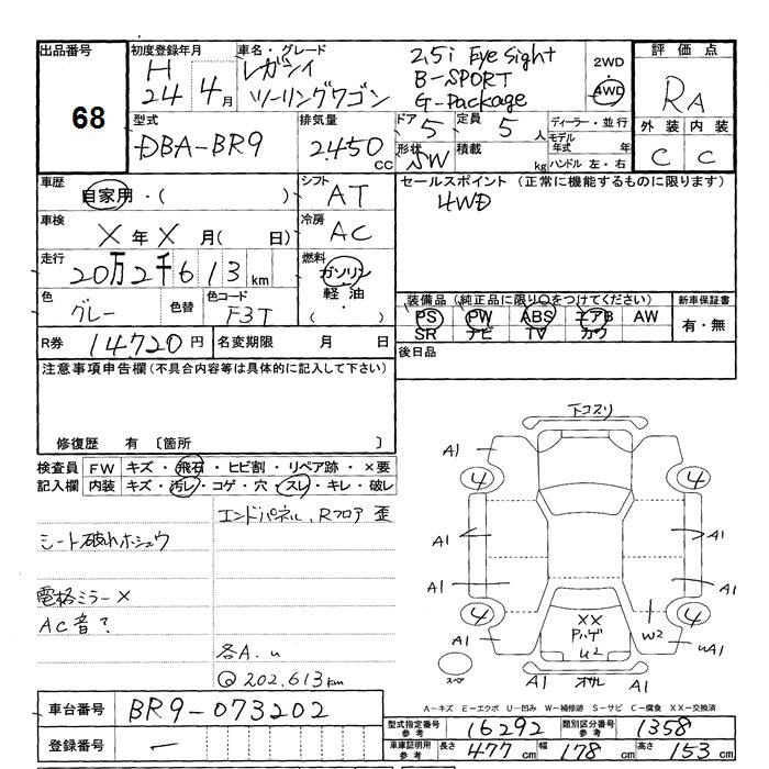 SUBARU LEGACY WAGON 4WD 2.5I EYESIGHT B SPORT G PACKAGE - лот 68