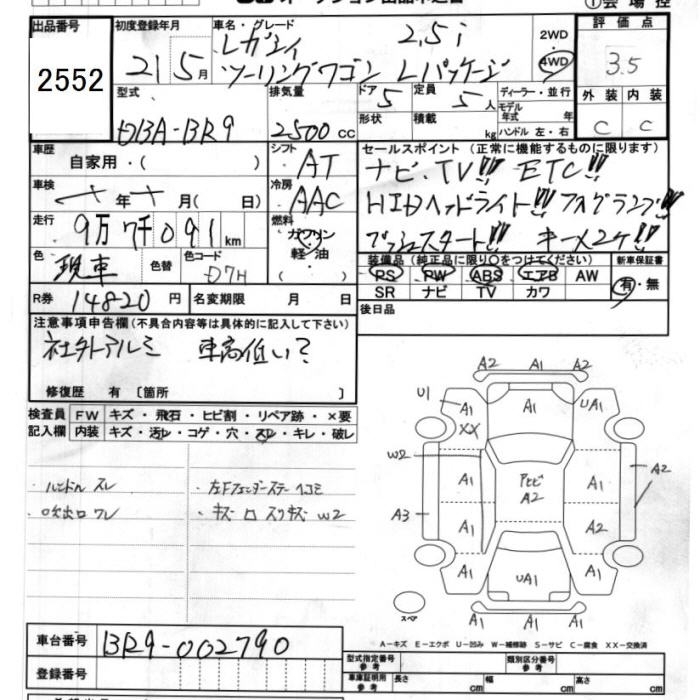 SUBARU LEGACY WAGON 4WD 2.5I L PACKAGE - лот 2552