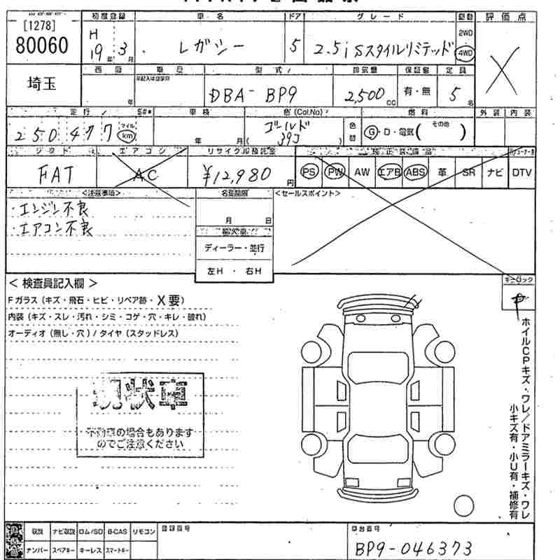 SUBARU LEGACY 2.5I_S STYLE LIMITED - лот 80060