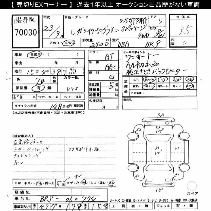 SUBARU LEGACY 4WD 2.5GT EYESIGHT S-PKG - лот 70030