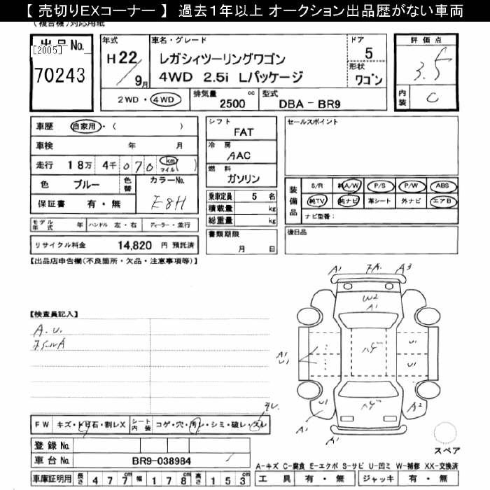 SUBARU LEGACY 4WD 2.5i L-PKG - лот 70243