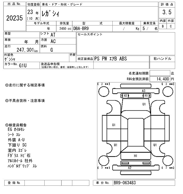 SUBARU LEGACY - лот 20235