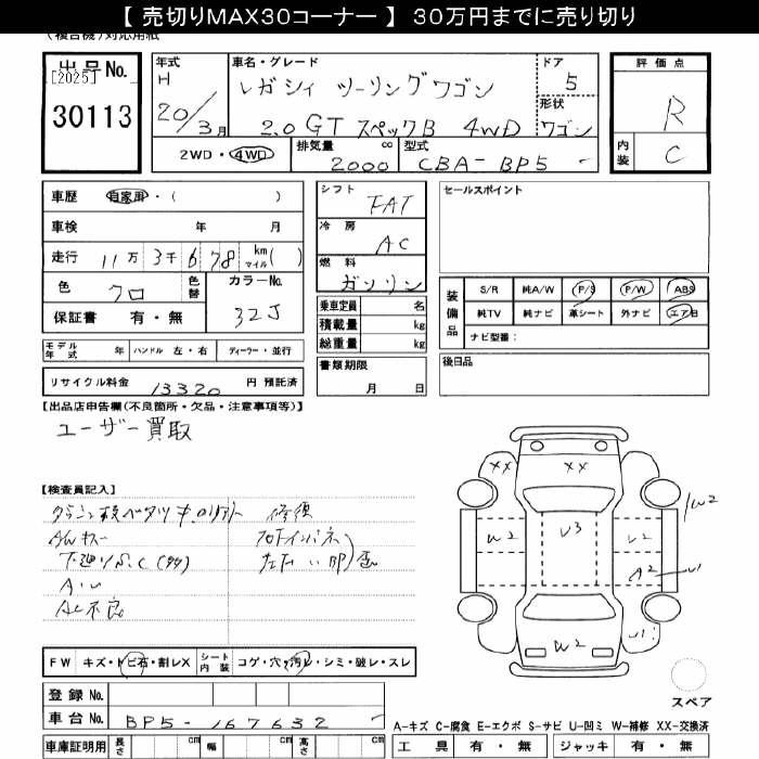 SUBARU LEGACY - лот 30113