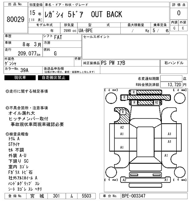 SUBARU LEGACY - лот 80029