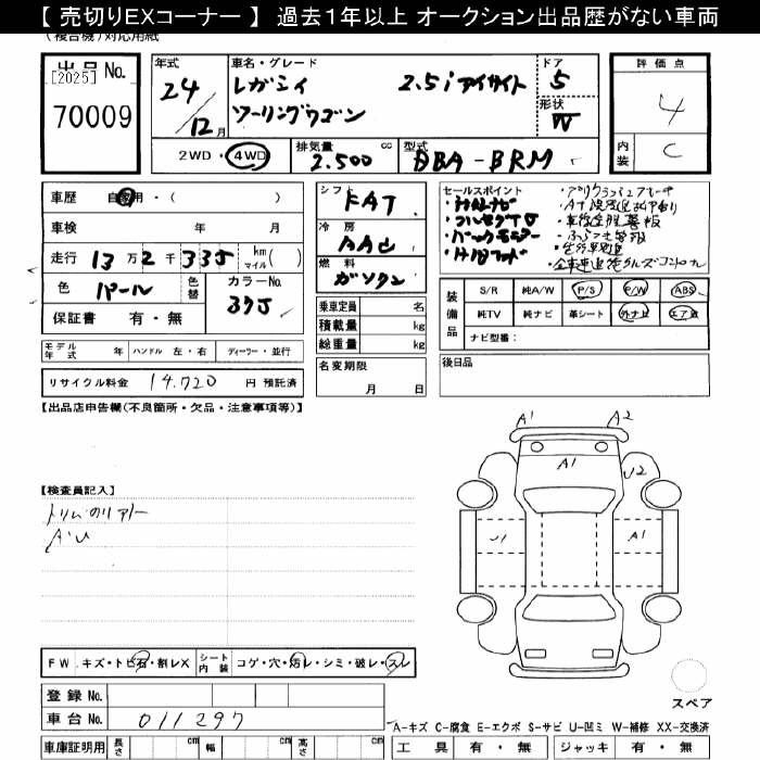 SUBARU LEGACY - лот 70009