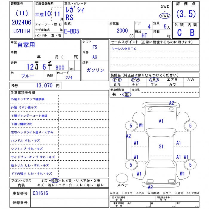 SUBARU LEGACY - лот 26705