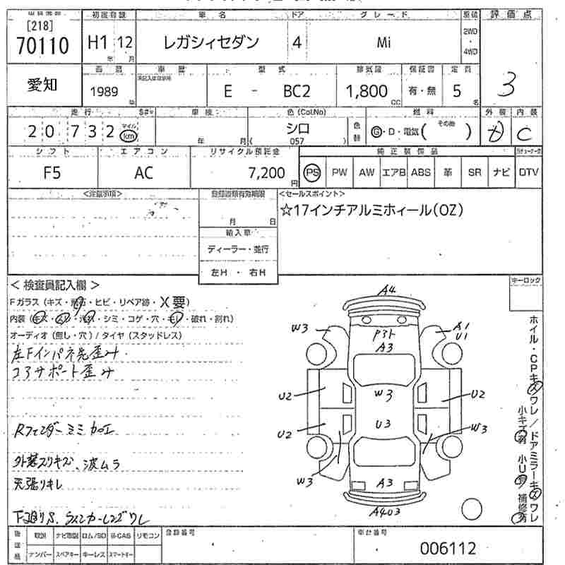 SUBARU LEGACY - лот 70110