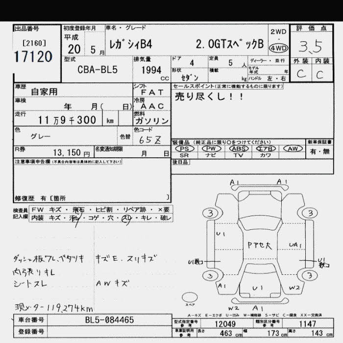 SUBARU LEGACY - лот 17120