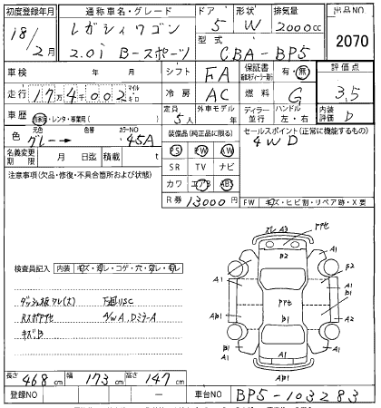 SUBARU LEGACY - лот 2070