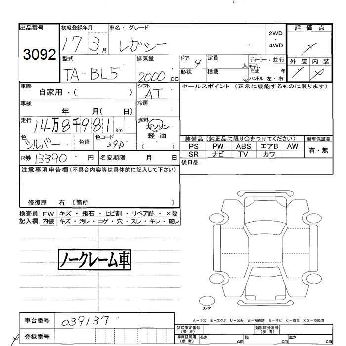 SUBARU LEGACY - лот 3092
