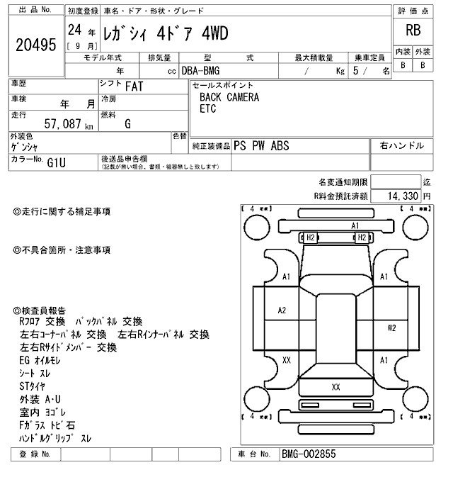 SUBARU LEGACY - лот 20495