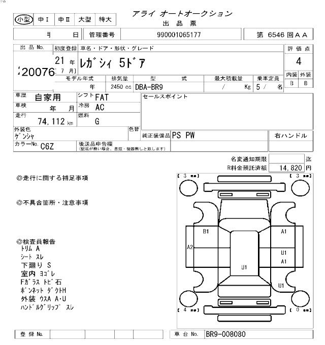 SUBARU LEGACY - лот 20076
