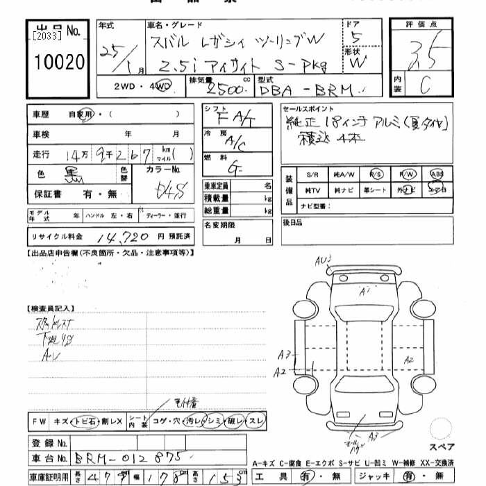 SUBARU LEGACY - лот 10020