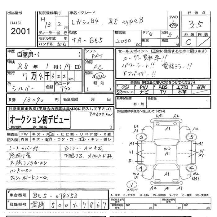 SUBARU LEGACY B4 - лот 2001
