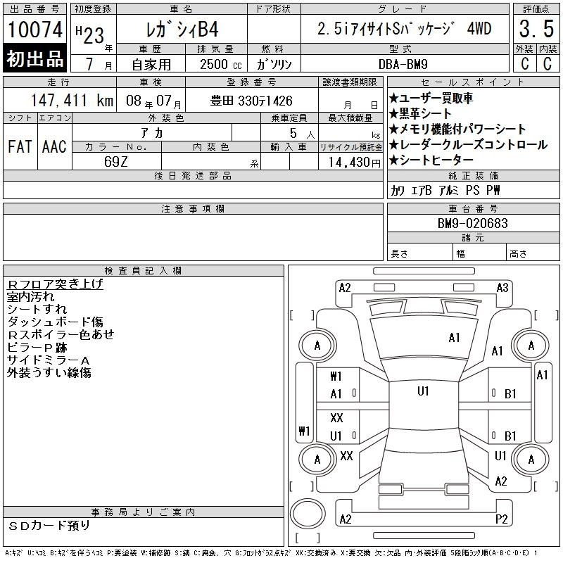 SUBARU LEGACY B4 - лот 10074