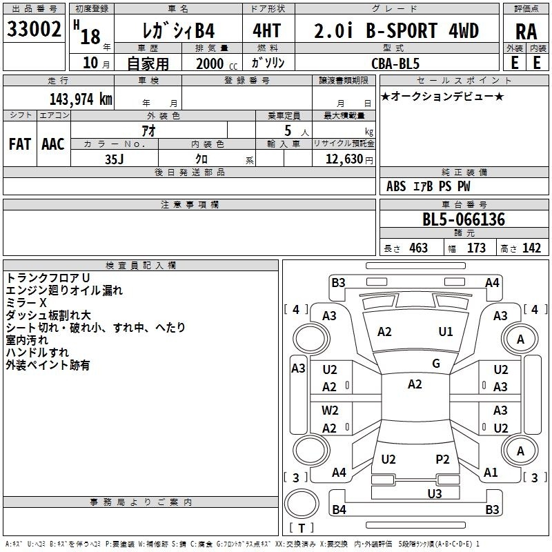 SUBARU LEGACY B4 - лот 33002