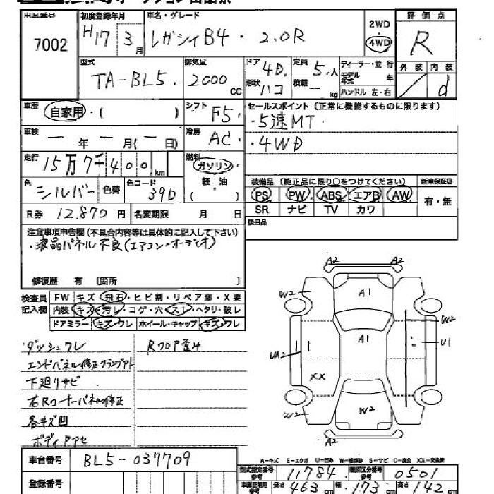 Все аукционы SUBARU LEGACY B4