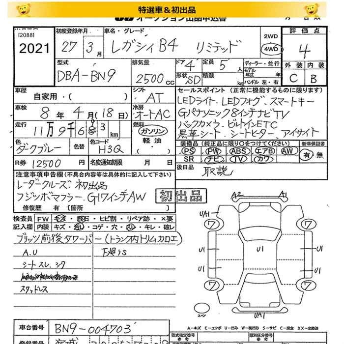 Все аукционы SUBARU LEGACY B4