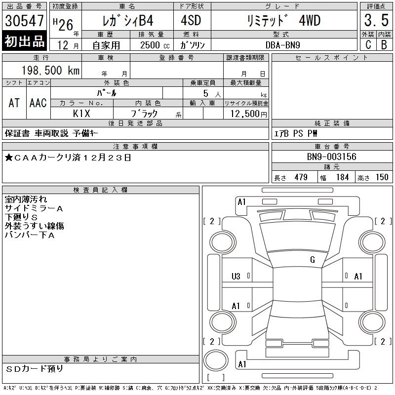 Все аукционы SUBARU LEGACY B4