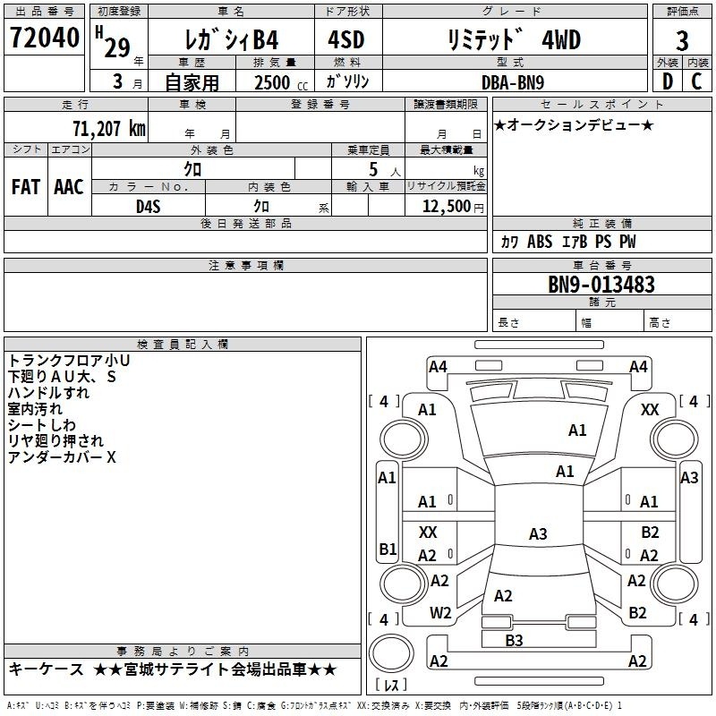 SUBARU LEGACY B4 - лот 72040