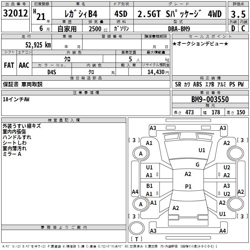 Все аукционы SUBARU LEGACY B4