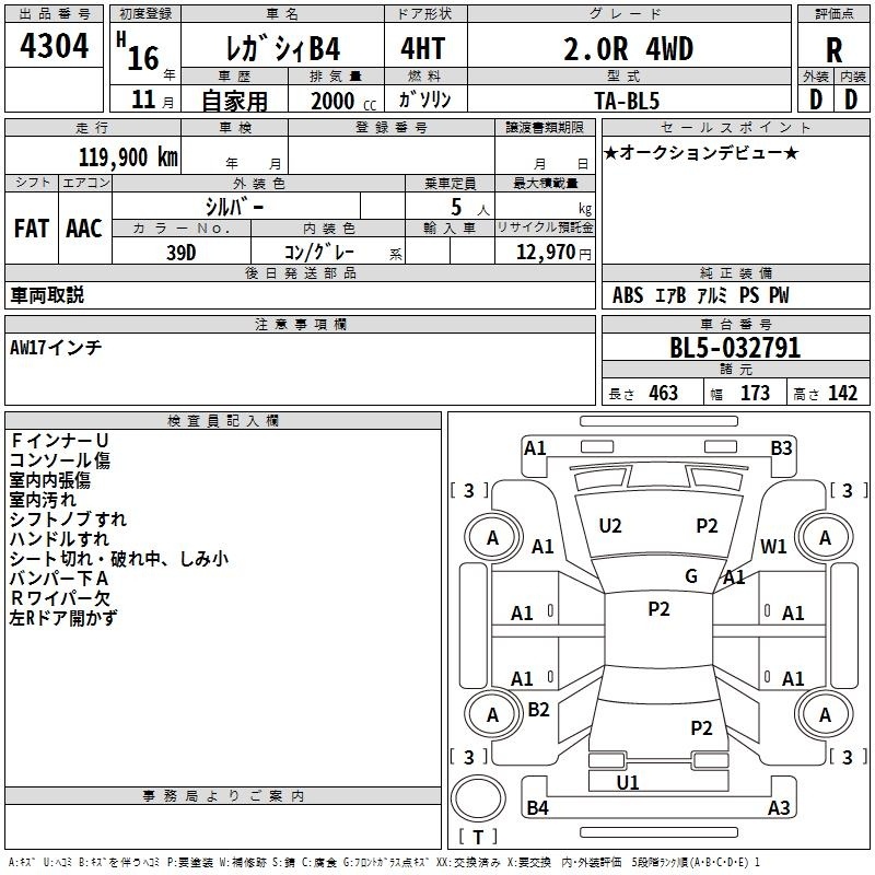 Все аукционы SUBARU LEGACY B4