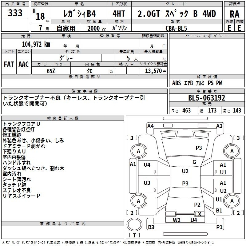 Все аукционы SUBARU LEGACY B4