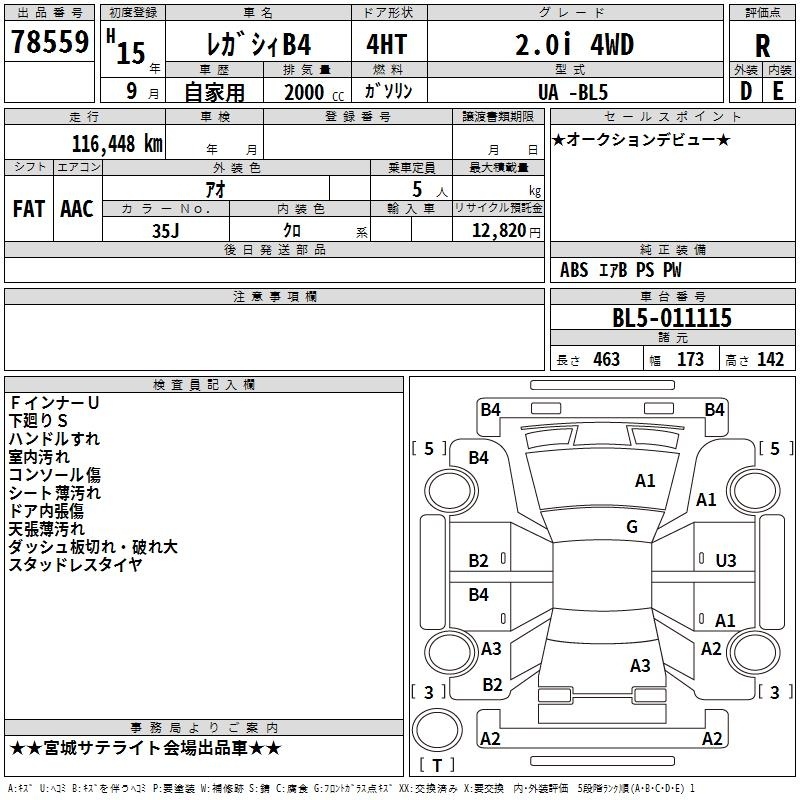 SUBARU LEGACY B4 - лот 78559