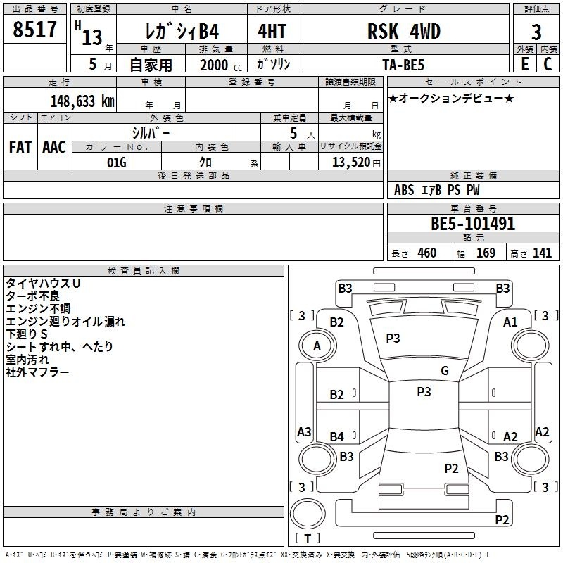 SUBARU LEGACY B4 - лот 8517