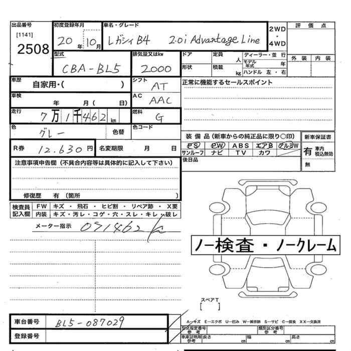 SUBARU LEGACY B4 - лот 2508