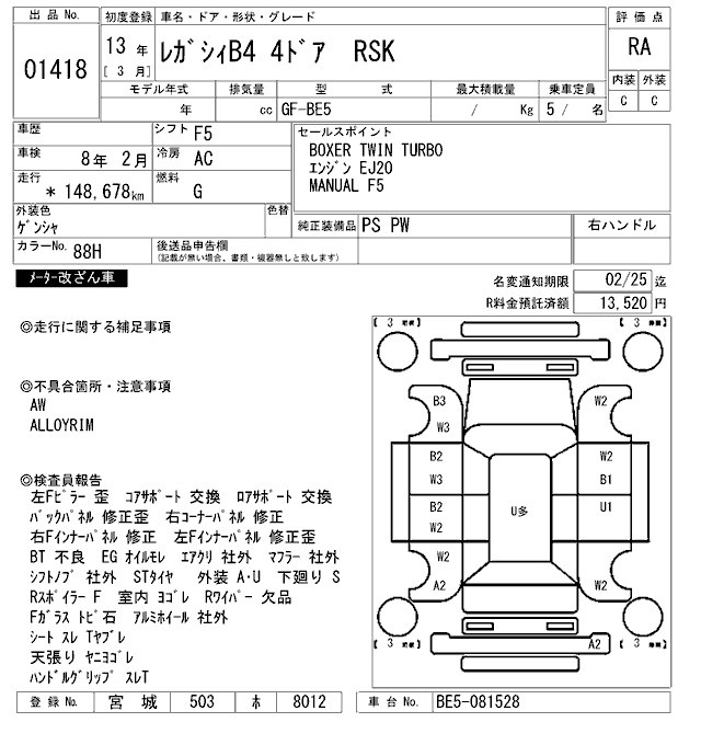 SUBARU LEGACY B4 - лот 1418