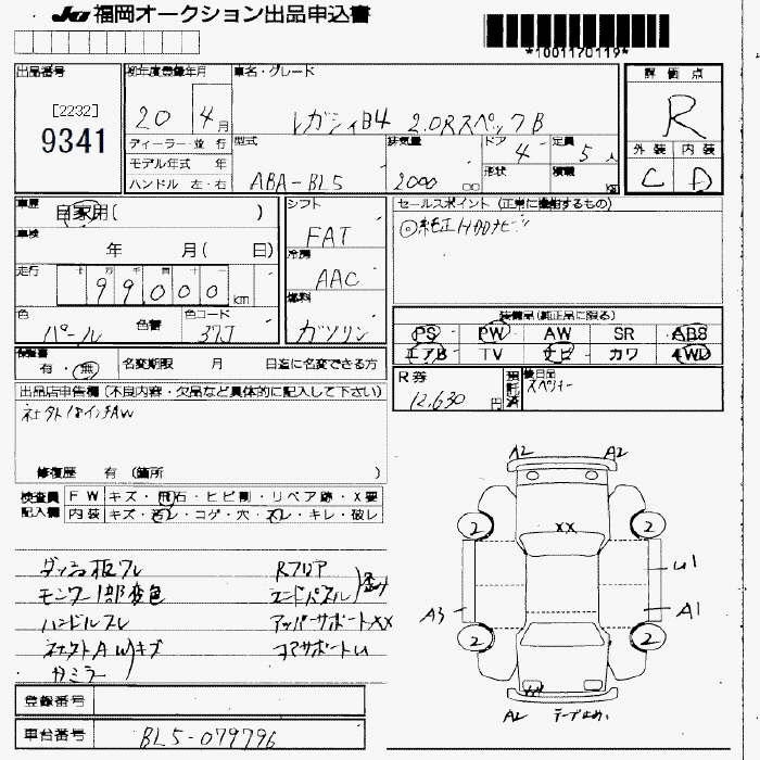 SUBARU LEGACY B4 - лот 9341
