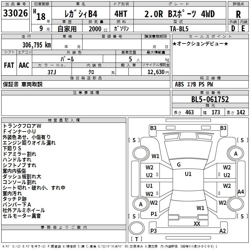 SUBARU LEGACY B4 - лот 33026