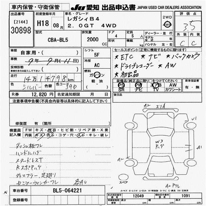 SUBARU LEGACY B4 - лот 30898