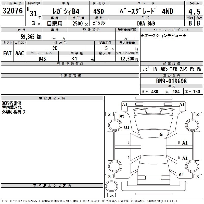 SUBARU LEGACY B4 - лот 32076