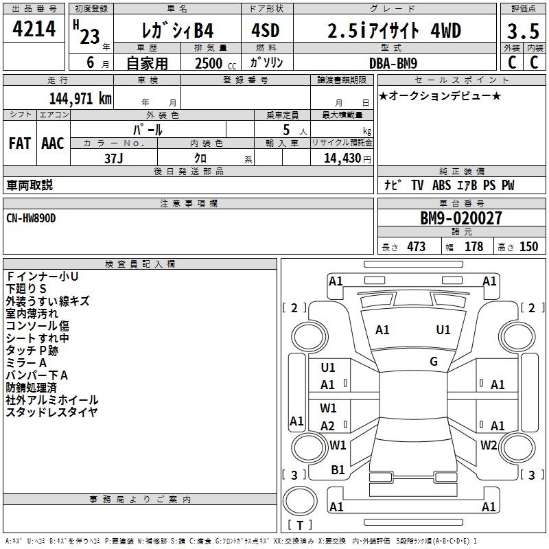 Все аукционы SUBARU LEGACY B4