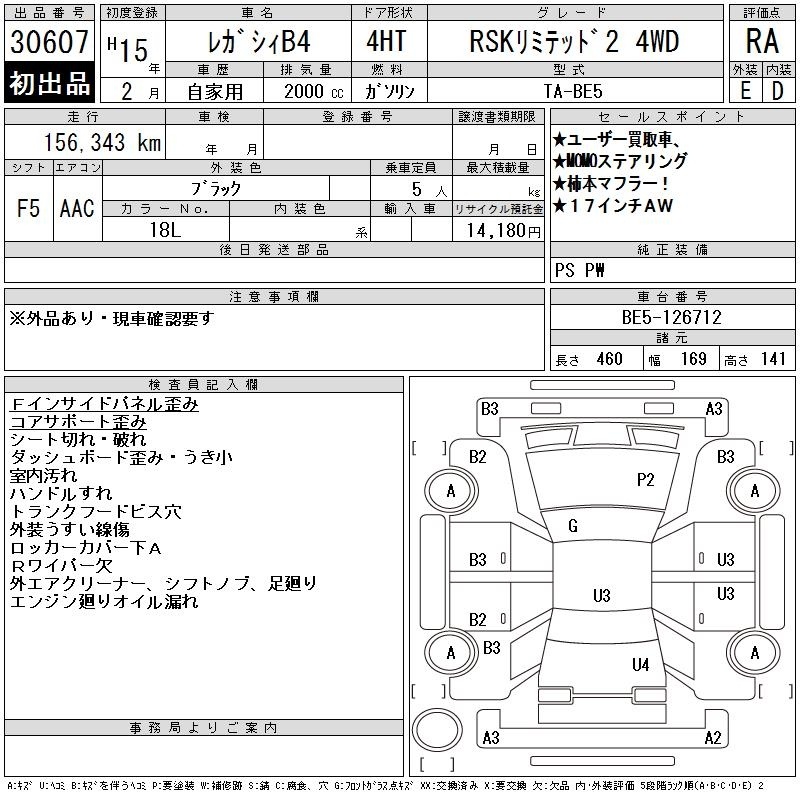 SUBARU LEGACY B4 - лот 30607