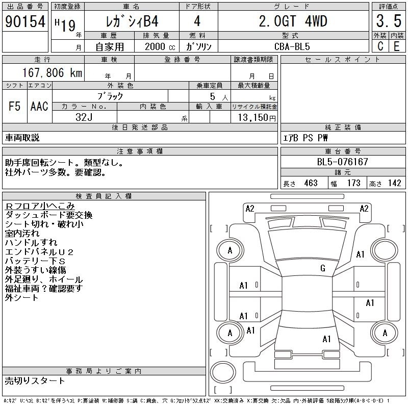 SUBARU LEGACY B4 - лот 90154