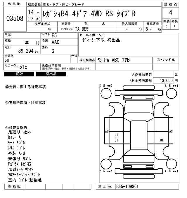 SUBARU LEGACY B4 - лот 3508