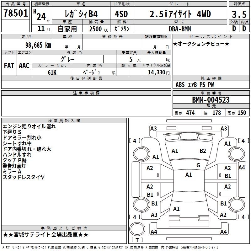 SUBARU LEGACY B4 - лот 78501
