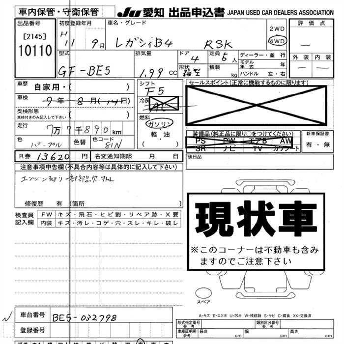 SUBARU LEGACY B4 - лот 10110