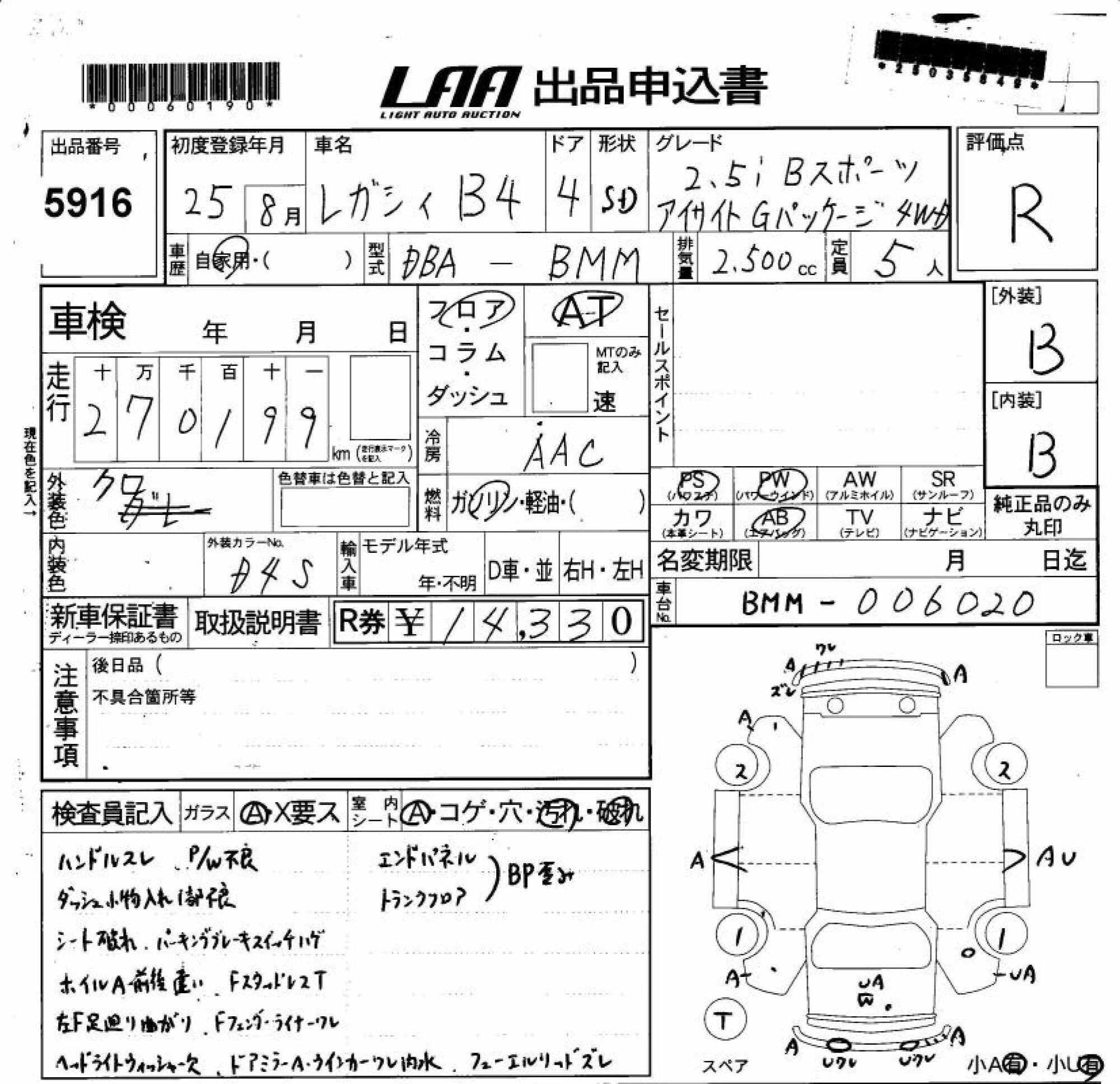 SUBARU LEGACY B4 - лот 5916