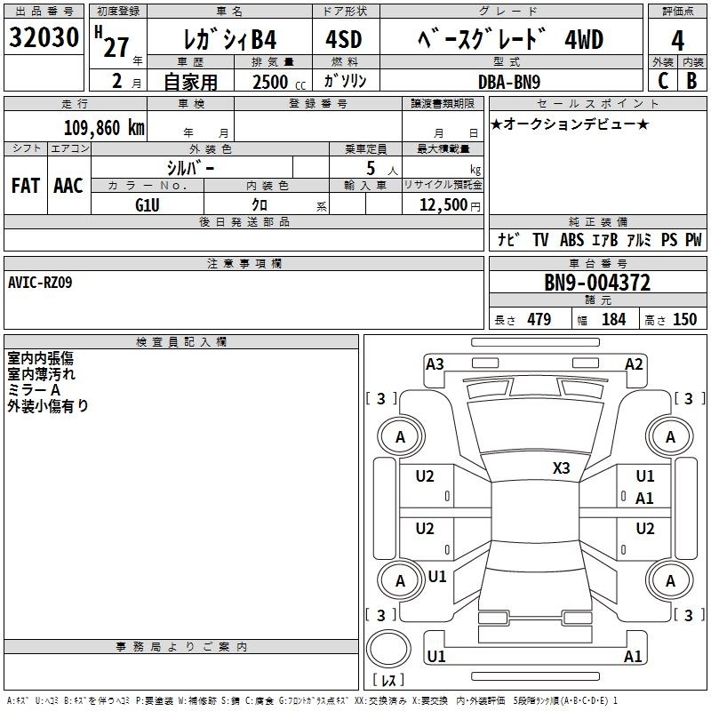 SUBARU LEGACY B4 - лот 32030