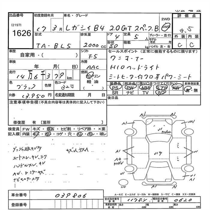 SUBARU LEGACY B4 - лот 1626