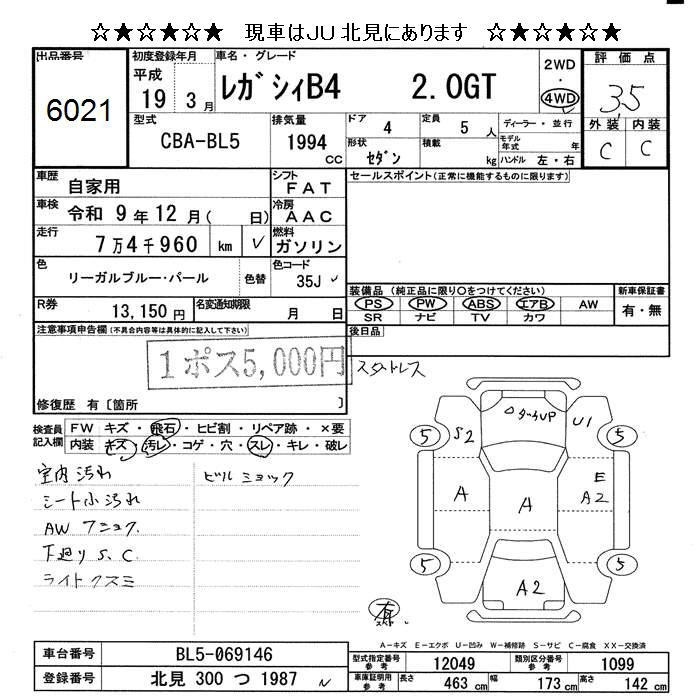 Все аукционы SUBARU LEGACY B4