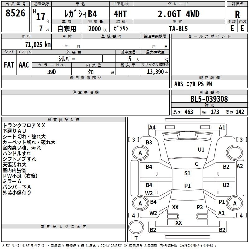 SUBARU LEGACY B4 - лот 8526