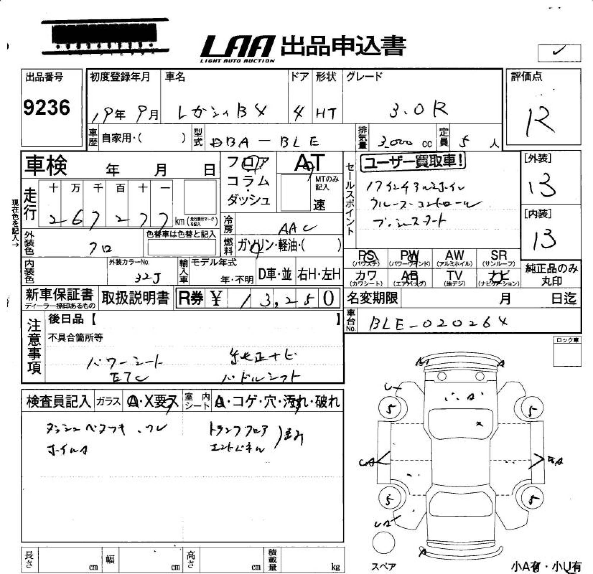 SUBARU LEGACY B4 - лот 9236
