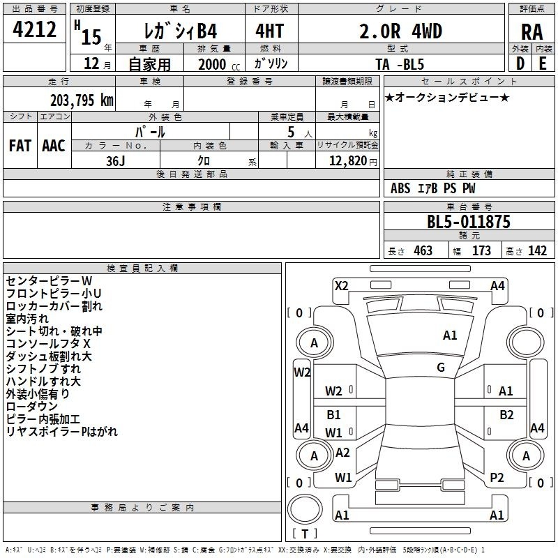 Все аукционы SUBARU LEGACY B4